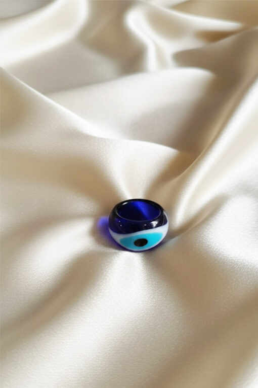 Bold Navy & Aqua Resin Evil Eye Statement Ring