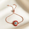 Dainty Gold Adjustable Bolo Bracelet with Pave Evil Eye Charm
