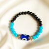 Make a striking statement of protection with this Bold Two-Tone Black & Cyan Evil Eye Bracelet.