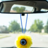 Bright Yellow Fur Pom Pom & Evil Eye Hanging Charm