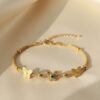 Charming Anti-Tarnish Gold Mesh Bracelet with Butterfly & Evil Eye Charms