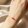 Charming Gold Adjustable Slider Bracelet with Red Evil Eye Fish Charm