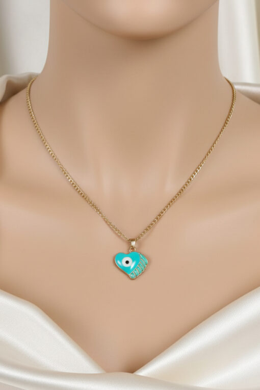 Charming Gold Heart Evil Eye Pendant Necklace in Turquoise Enamel