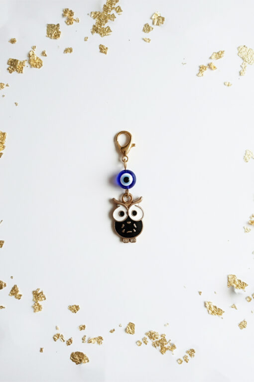 Charming Gold Owl Charm Clip with Evil Eye Protection