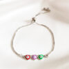 Charming Silver Adjustable Slider Bracelet with Multi-Color Heart Evil Eyes