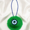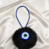 Chic Black Fur Pom Pom & Classic Evil Eye Hanging Charm