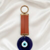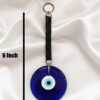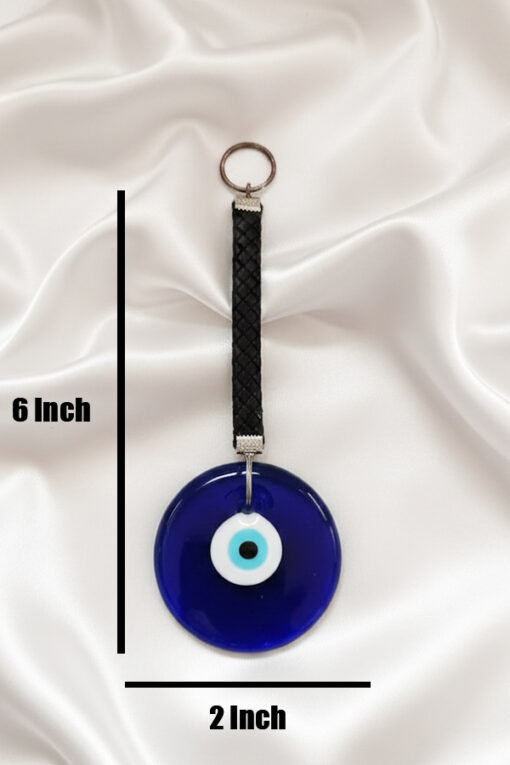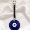 Chic Deep Blue Glass Evil Eye Wall Hanging with Black Leather Strap