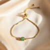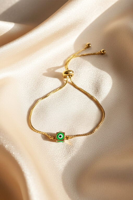Chic Gold Adjustable Slider Bracelet with Green Square Evil Eye