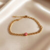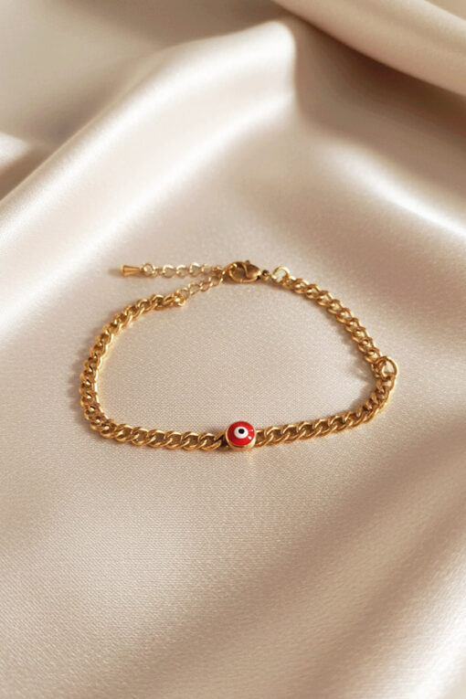Chic Gold Curb Chain Bracelet with Vibrant Red Evil Eye Charm