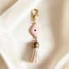 Chic Gold Evil Eye Keychain with Pink Geometric Charm & Tassel