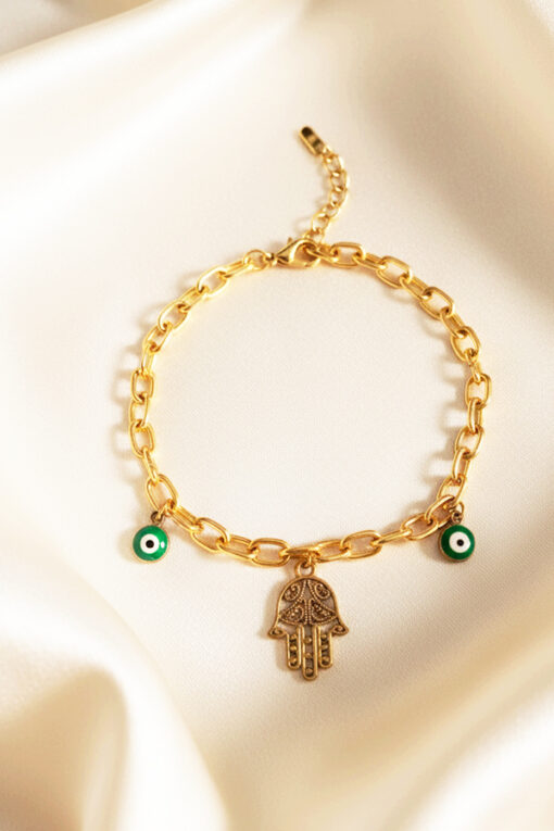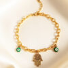Chic Gold Link Chain Bracelet with Hamsa Hand & Evil Eye