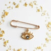 Chic Gold Safety Pin Brooch with Minimalist Evil Eye Charm