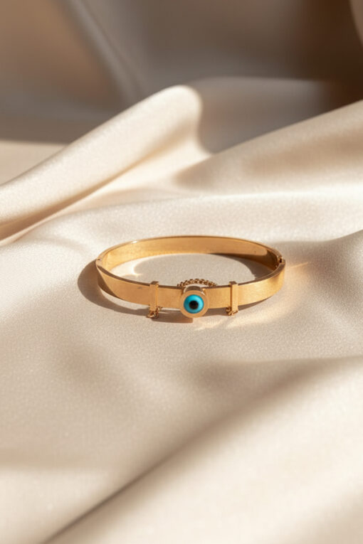 Golden Dual Heart Evil Eye Bangle – Sparkling Love & Protection