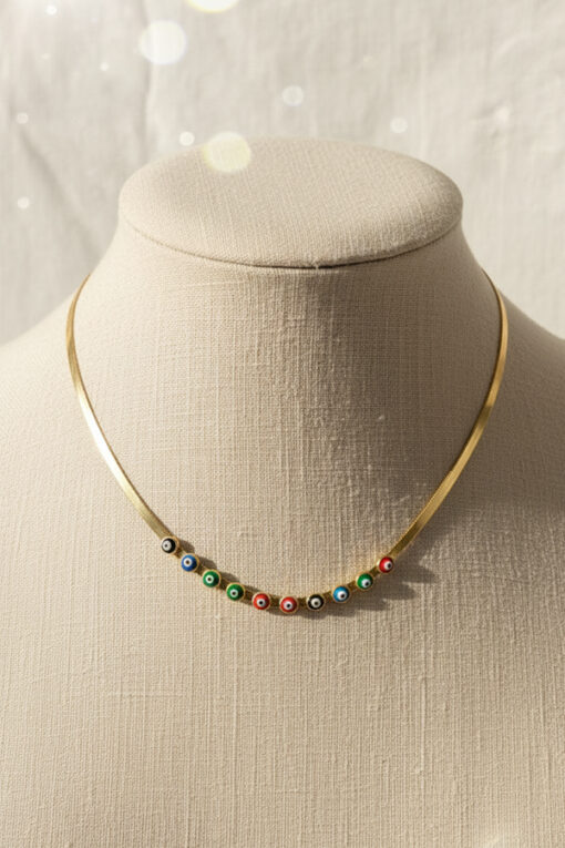 Chic Gold Snake Chain Necklace with Multi-Colored Evil Eye Necklace