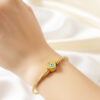 Chic Gold Twisted Cable Cuff Bangle with Heart Evil Eye Charm