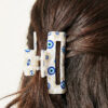 Chic Pearlescent White Acetate Hair Claw Clip with Gold & Blue Evil Eye Pattern