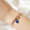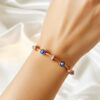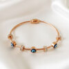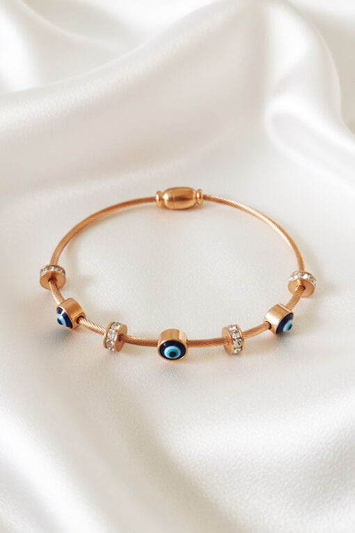 Chic Rose Gold Cable Bangle with Triple Evil Eye & Crystal Spacers
