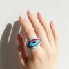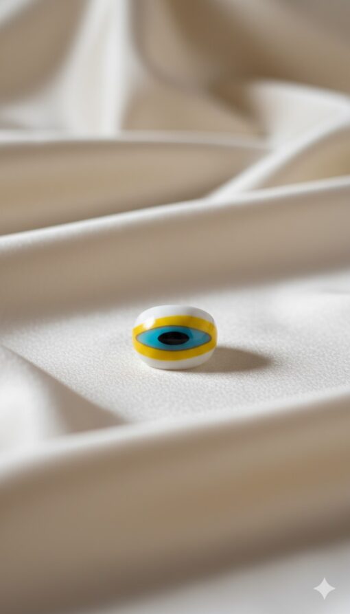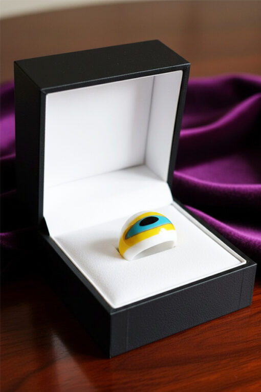 Chic White Resin Evil Eye Ring with Yellow & Blue Detail