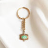 Bold Gold Sunburst Evil Eye Keychain in Yellow Enamel