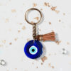 Luxurious Blue & White Evil Eye Tassel Keychain with Crystal Accents