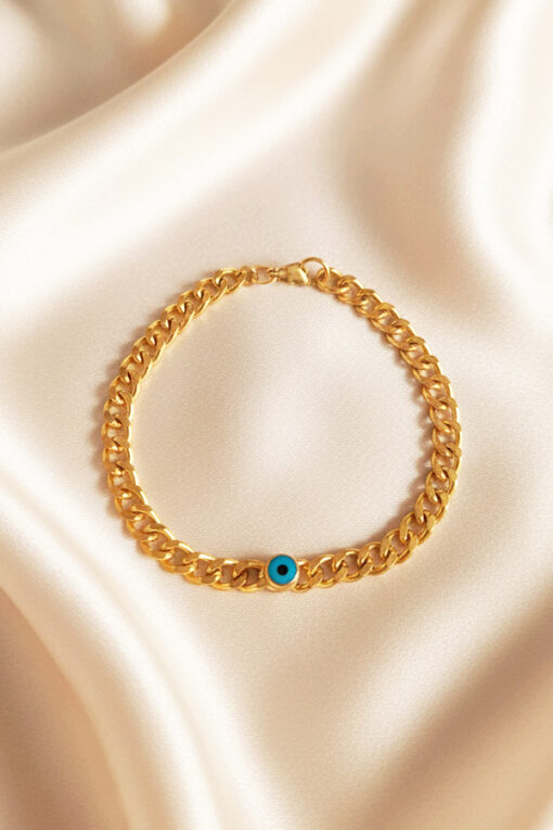 Classic Gold Curb Chain Bracelet with Central Evil Eye Charm