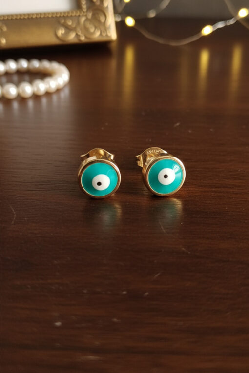 Classic Turquoise Evil Eye Stud Earrings – Minimal Protection Charm