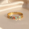 Add a vibrant touch of luck and style to your wrist with this unique link bangle. The gold-toned band is fully articulated with repeating oval links, each featuring a vividly colored Evil Eye motif. These charms showcase a fun spectrum of enamel hues, including classic blues, bold reds, and soft pastels. As a traditional symbol of protection, this bracelet is both a fashionable accessory and a meaningful talisman. Its flexible link construction ensures comfortable wear and a secure fit. The playful yet sophisticated design makes it perfect for daily wear, whether you stack it with other bangles or wear it as a solo statement piece.