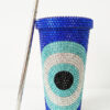 Dazzling Blue Rhinestone Evil Eye Tumbler with Stainless Steel Straw