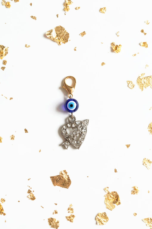Dazzling Heart & Arrow Clip-On Charm with Evil Eye Protection