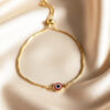 Delicate Gold Adjustable Slider Bracelet with Red Evil Eye