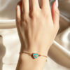 Delicate Gold Adjustable Slider Bracelet with Turquoise Heart Evil Eye