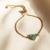 The centerpiece is a charming heart-shaped Evil Eye charm set in a serene turquoise enamel.