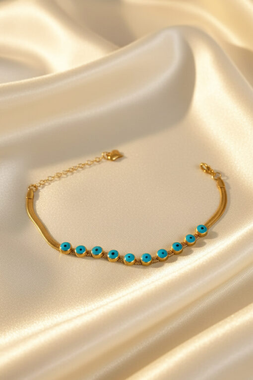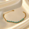 Delicate Gold Anti-Tarnish Evil Eye Station Bracelet in Turquoise