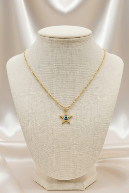 Delicate Gold Star Pendant Necklace with Evil Eye Charm