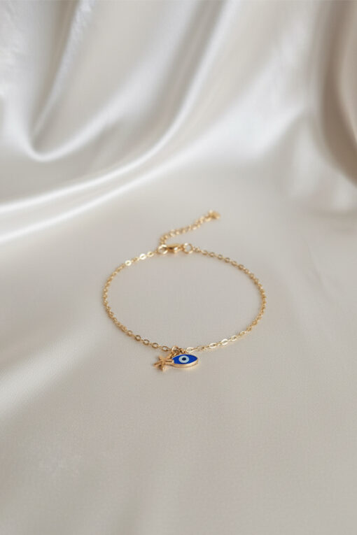 Delicate Gold Starfish & Evil Eye Charm Anklet