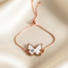 Delicate Rose Gold Adjustable Slider Bracelet with Mother-of-Pearl Butterfly