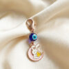 Dreamy Rose Gold Bunny on Moon Charm Clip with Evil Eye