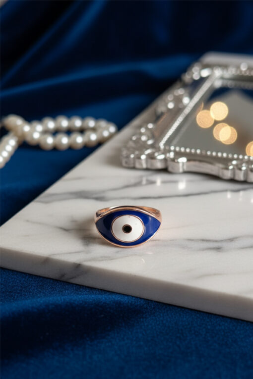 Elegant Blue Evil Eye Statement Ring – Protective Enamel Golden Jewelry