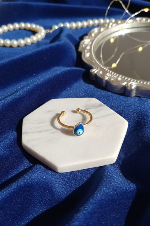 Elegant Blue Evil Eye Teardrop Ring – Symbol of Protection & Good Luck