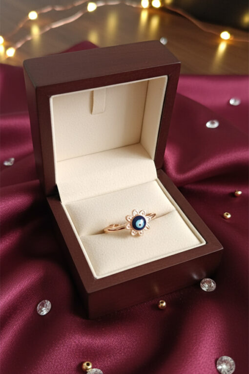 Elegant Evil Eye Flower Ring – Rose Gold Plated Protection Charm