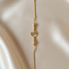 Delicate Gold Adjustable Slider Bracelet with Heart & Green Evil Eye Charm