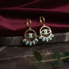 Elegant Gold Evil Eye Drop Earrings with Blue Enamel Detailing