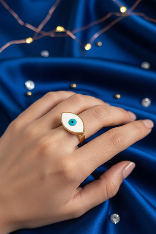 Elegant Golden Evil Eye Statement Ring – Symbol of Protection & Style