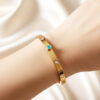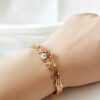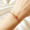 Chic Rose Gold Cable Bangle with Triple Evil Eye & Crystal Spacers