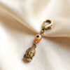 Chic Gold Evil Eye Keychain with Swan Charm in Soft Peach Enamel