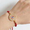 Invite good fortune and spiritual protection into your life with this charming Emerald Green Elephant Evil Eye Bracelet. This piece is crafted with a rich, twisted teal-green rope band, a color often linked to tranquility, renewal, and balance. Uniquely, the elephant’s body is adorned with a Blue Evil Eye and vibrant dots of red and turquoise enamel, combining the joyous spirit of the elephant with the protective power of the “Nazar” to ward off negative energy. Designed for effortless wear, the bracelet features a premium gold-toned sliding clasp engraved with a leaf texture, allowing you to easily adjust the cord for a perfect, secure fit on any wrist. Finished with polished gold end caps, this meaningful accessory is perfect for layering or wearing as a daily reminder of strength and safety.