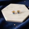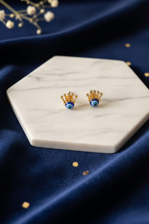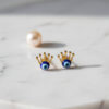 Golden Crown Evil Eye Stud Earrings – Royal Charm & Spiritual Protection