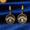 Golden Evil Eye Hoop Earrings – Elegant Black Enamel Protection Charm