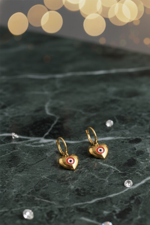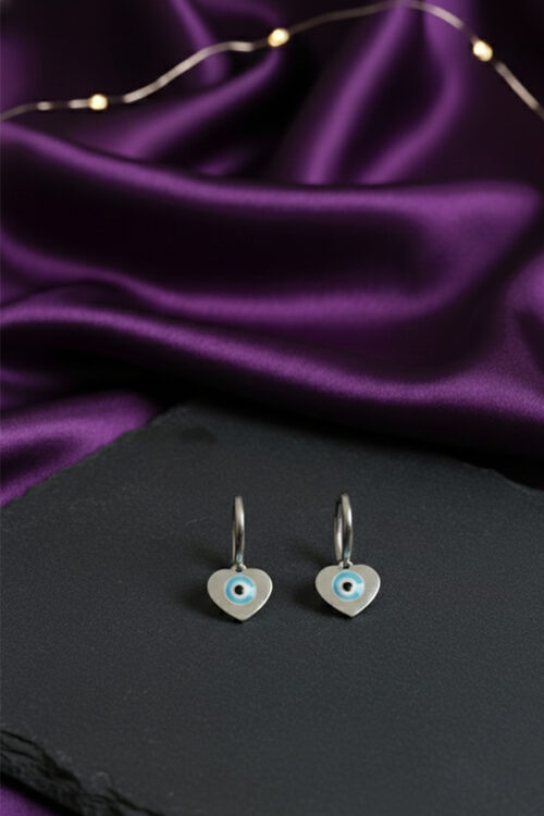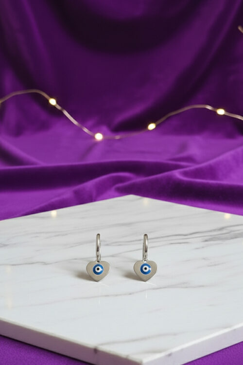 Silver Heart Blue Evil Eye Hoop Earrings – Elegant Charm of Protection