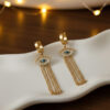 Golden Evil Eye Dangle Earrings with Chain Tassels